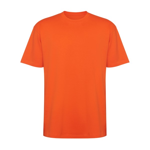 Оверсайз футболка з коротким рукавом. Круглий комір, оздоблений ребром 2x1, з відповідними швами. Бічні шви. Широка подвійна строчка на рукавах і подолі.