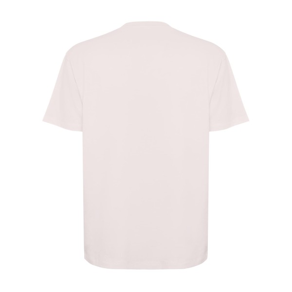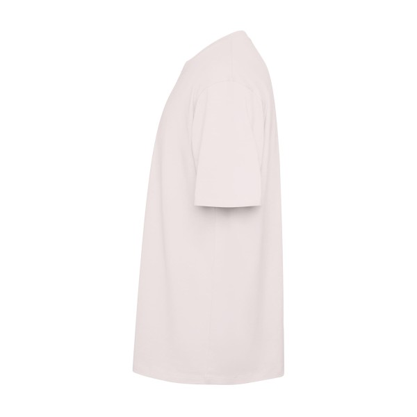 Оверсайз футболка з коротким рукавом. Круглий комір, оздоблений ребром 2x1, з відповідними швами. Бічні шви. Широка подвійна строчка на рукавах і подолі.