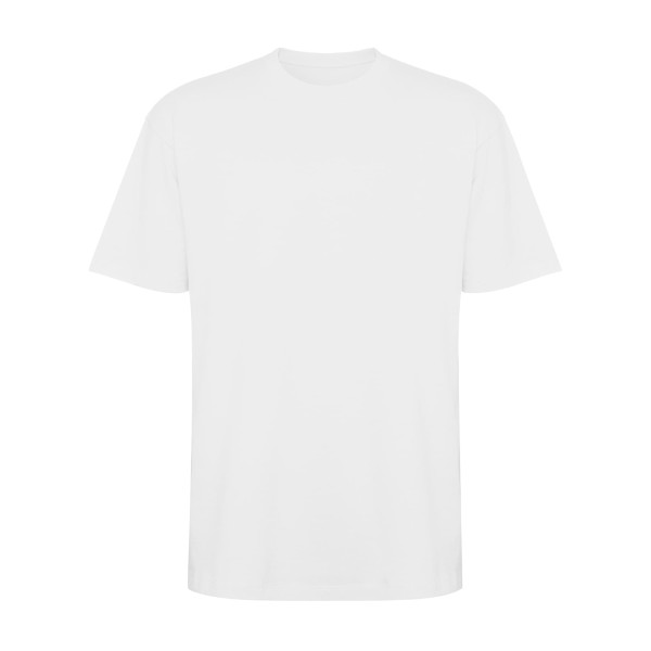 Оверсайз футболка з коротким рукавом. Круглий комір, оздоблений ребром 2x1, з відповідними швами. Бічні шви. Широка подвійна строчка на рукавах і подолі.