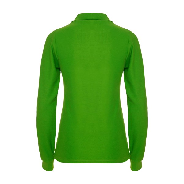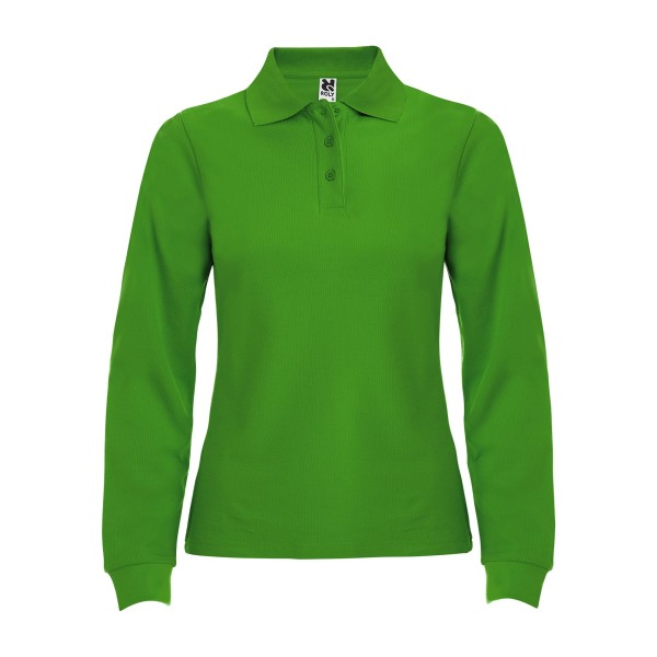 Поло жіноче з довгим рукавом Estrella з ребристим коміром і манжетами, планкою на 3 ґудзиках і ребристими манжетами з еластану. Посилені закриті шви на комірі.