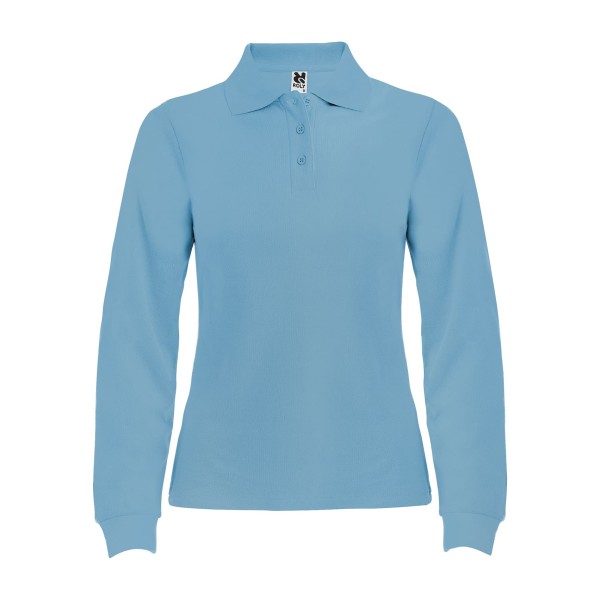 Поло жіноче з довгим рукавом Estrella з ребристим коміром і манжетами, планкою на 3 ґудзиках і ребристими манжетами з еластану. Посилені закриті шви на комірі.