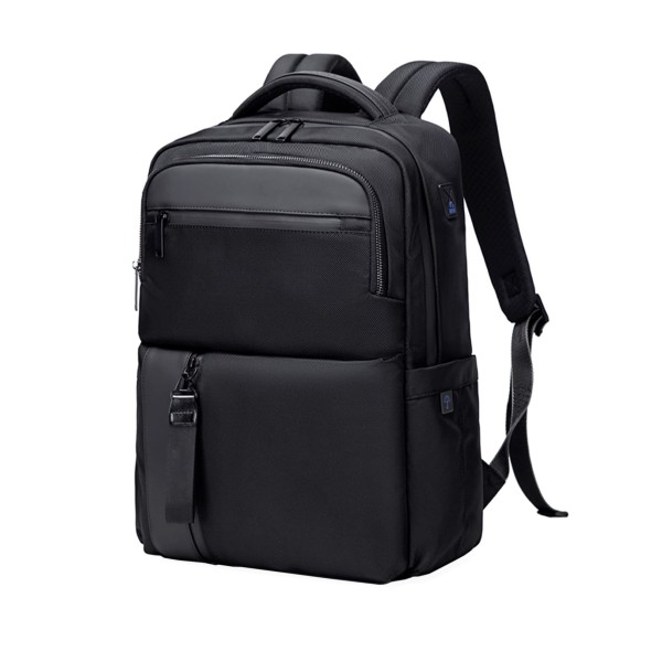 Рюкзак для ноутбуку 15,6” та планшету.Тканина високоякісний водонепроникний 100% поліестер, застібка блискавка та стильний замок. Має основний великий відділ та різні кармани органайзери, відділ для ноутбуку та планшету, дві бокові кишені та дві попереду, ремінь для валізи. М’яка спинка та лямки