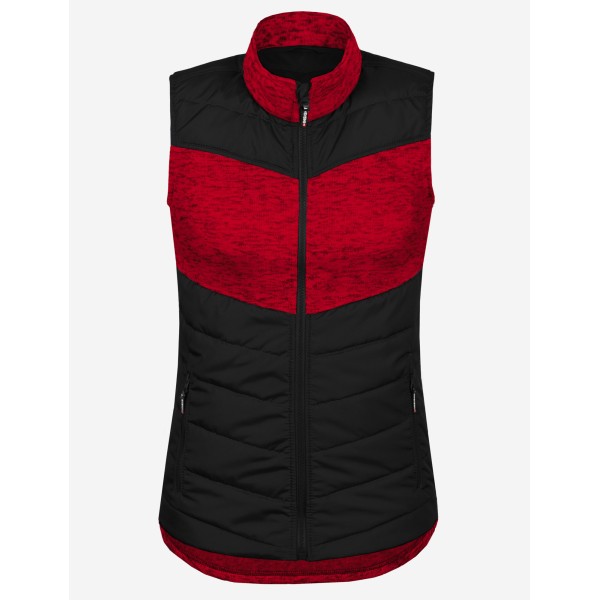 Стильний жіночий флісовий жилет, поєднаний з функціональних матеріалів: меланжевий трикотажний фліс та стьобана плащова тканина. Утеплений технологічним синтепухом. Відмінно підійде для робіт на вулиці в прохолодну пору року та приміщень, а також повсякденного використання.